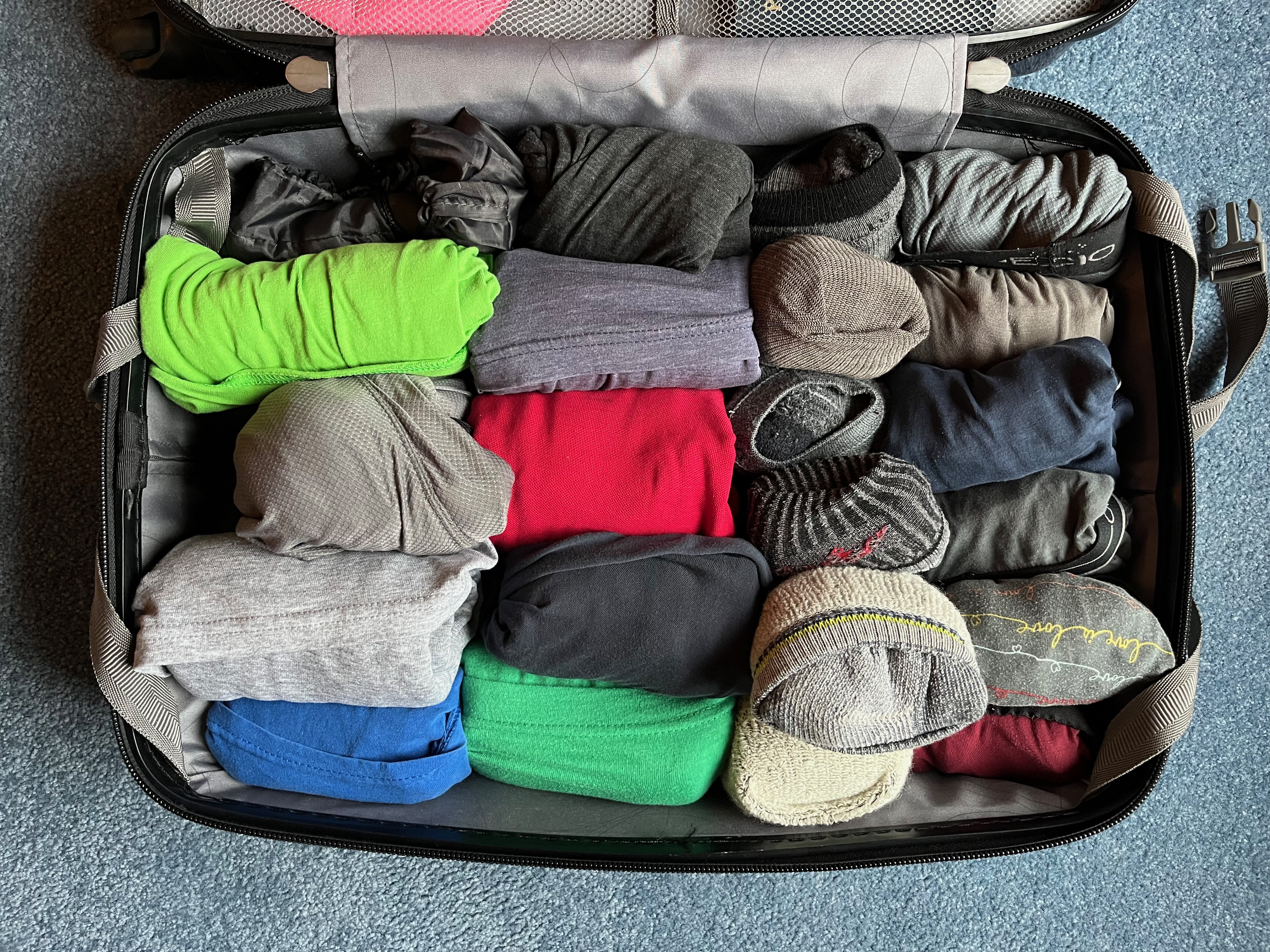 I usually carry six sets of shirts, socks, and underwear, one pair of pants, some sleeping apparel, a pair of slippers, and toiletries. I expect to do laundry at some point during my trip — but I’ve learned not to pack detergent pods. Not only can they appear suspicious on x-rays, but they can also explode in transit. I once anticipated that latter scenario and double-bagged my pods — which only made it look more suspicious upon arrival.
